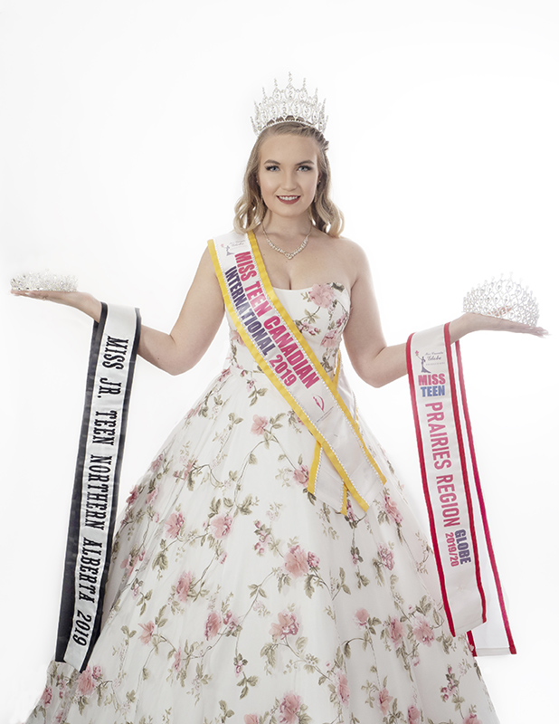 My pageantry history only actually started in September, 2018, with a small local pageant. After enjoying the company of other girls with similar goals and feeling accomplished at my first pageant I went on to compete in Calgary, Alberta in May, 2019 at the Miss Teen Calgary pageant and was awarded the title and crown for Miss Jr. Teen Northern Alberta 2019. In August 2019, I traveled to Toronto, Ontario to compete in the Miss Canada Globe pageant with some of the most amazing young ladies from across the whole country. The experience was beyond my expectations as I learned so my much about the pageantry world from many knowledgeable delegates who had several years of experience. They all made me feel welcomed and we quickly became close friends. At this pageant I was awarded the regional title and crown for Miss Teen Prairies Region Globe 2019 and then the national title and crown for Miss Teen Canadian International 2019/2020.