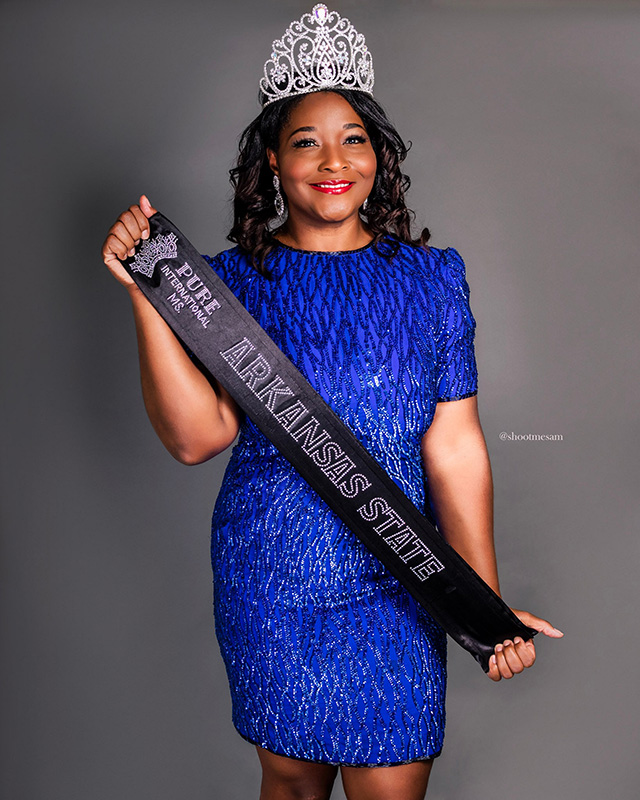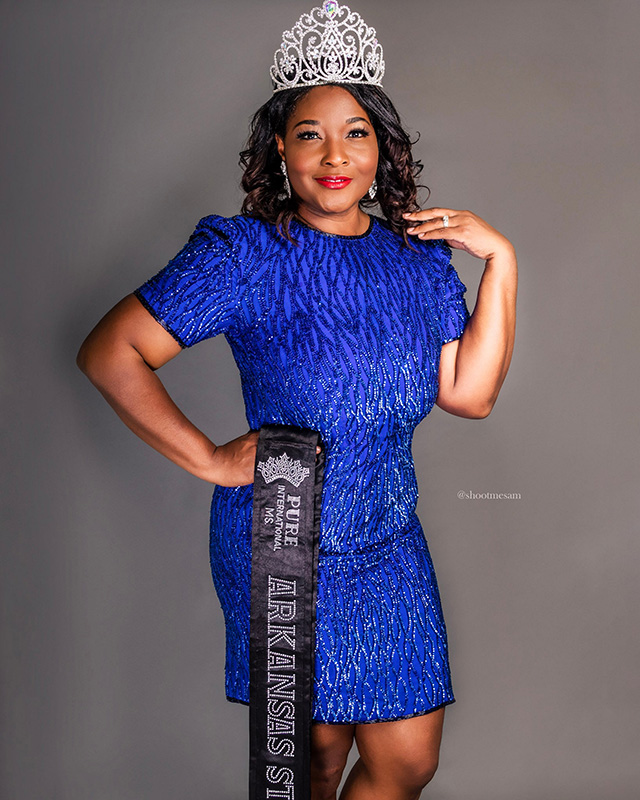In 2019 I decided to compete at the Saline County Fair pageant. This is actually where my journey began. In 2019 I decided to compete at the Mrs. Arkansas America pageant. I placed in the top 10 within the Arkansas America system. A proud moment for me, this was. In 2020 I decided to join the Pure International pageant family where I became a city delegate. I competed in the state pageant as Pure International Ms. Little Rock. This was the day that changed my pageant life forever. I was crowned Pure International Ms. Arkansas State.