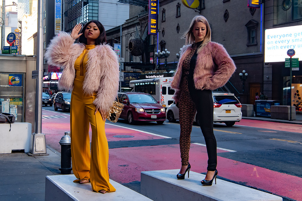 What made the moment particularly magical, is that it represented a confluence of several things that for me are quite special. In the photo used, I appear alongside my good friend, Mercy Maddox (also my roommate at NY fashion week); it was taken during a photoshoot we did together in December. At the moment of the reveal, we were standing next to each other, just as we were in the photo. Furthermore, the photographer who took the shot in December, Robin Houck, was also there for this New York experience – and actually captured images of us in Times Square at that moment. Images of us. Looking at ourselves on the billboard! Talk about serendipity.