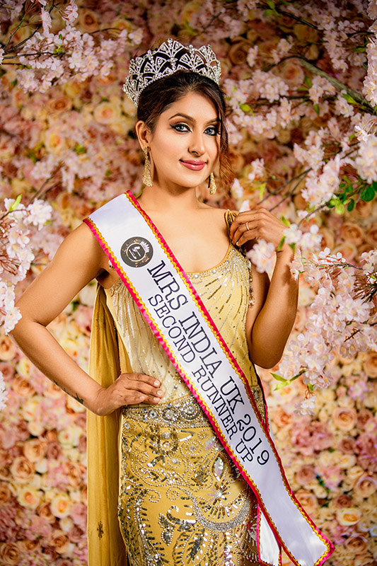 Dr Neha Sharma Mrs India UK 2019 2nd R.U. , World Class Beauty Queens Magazine, Flower photo by Photograpger: Digpal Singh Rathore(patronproduction.com) Makeup artist:Preety Tarsariya, Other Photos by: Photographer: UE MEDIA Videography & Photography Makeup artist: Hadasah Holder (Instagram: feel_prestige)