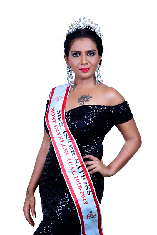 Crowned as “Most Intellectual” – Mrs Inter nations 2018, A international pageant which happened in Singapore on October 20th 2018