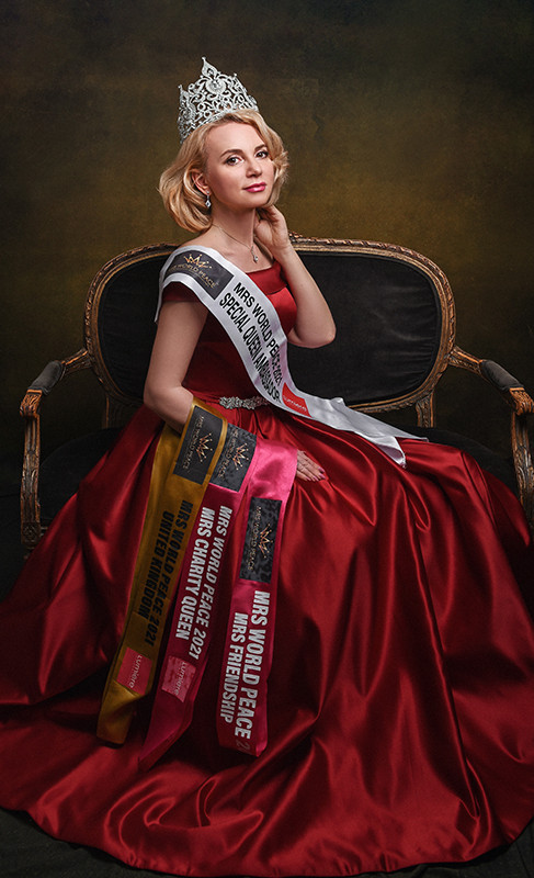 Irene Stark Mrs World Peace United Kingdom 2021, World Class Beauty Queens Magazine, Credits : Photo studio “United Art Hall”, Photographer Victoria Coolco, “Samari Bridal Studio”, Wedding salon “Laura Style”