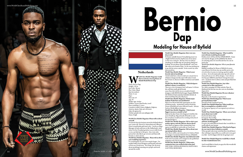 World Class Models Magazine: What kind of legacy do you want to leave behind as a model.