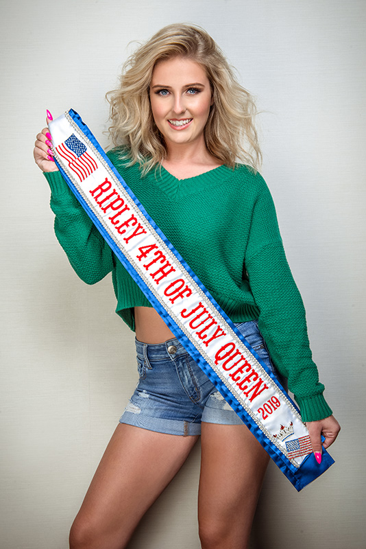 The current title I hold is very near and dear to my heart simply because it is in my home town. I have had the honor of representing this festival three times throughout my pageant career as Jr. Miss, Teen, and now Miss Ripley 4thof July. The Ripley 4thof July is known as America’s Largest Small-Town Independence Day Celebration. It has brought in many TV companies and people throughout the years. This festival is always growing and improving, and I am very blessed to say that Ripley is my home town.