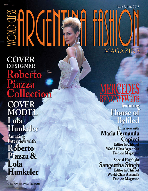 2nd Issue was with the legendary ItaloArgentino fashion designer Roberto Piazza as cover designer and Lola Hunkeler as cover model modeling Piazza`s Dress!